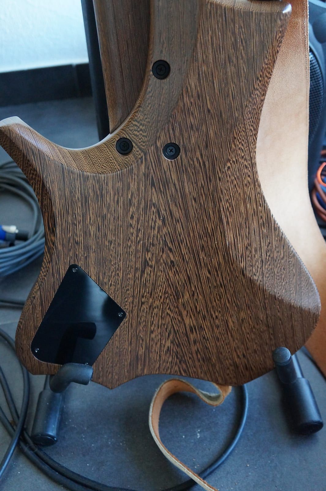 Tampo em raiz de Poplar, corpo e braço em wenge. Escala em ébano preto. Pickups Silo Bareknuckle com 10º graus de inclinação. Push-push knobs. Selector de 3 posições. Preço negociável!